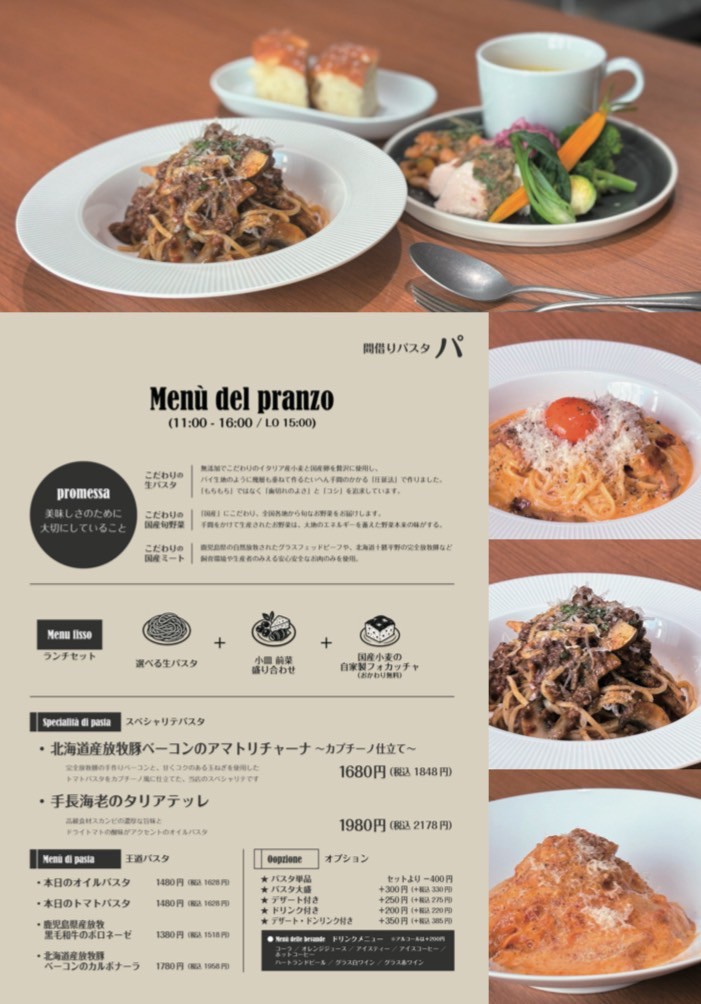 こだわりの生パスタを中心に、前菜やメイン料理まで揃えたイタリアンをご用意しています!
